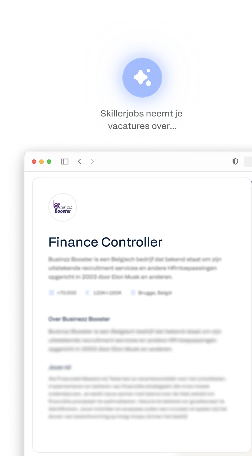 Geen jobpagina op je website? Geen probleem. Genereer je vacatureteksten met Skillerjobs. Ons platform creëert automatisch aantrekkelijke en authentieke teksten die het juiste talent aanspreken en perfect aansluiten bij jouw bedrijfscultuur.